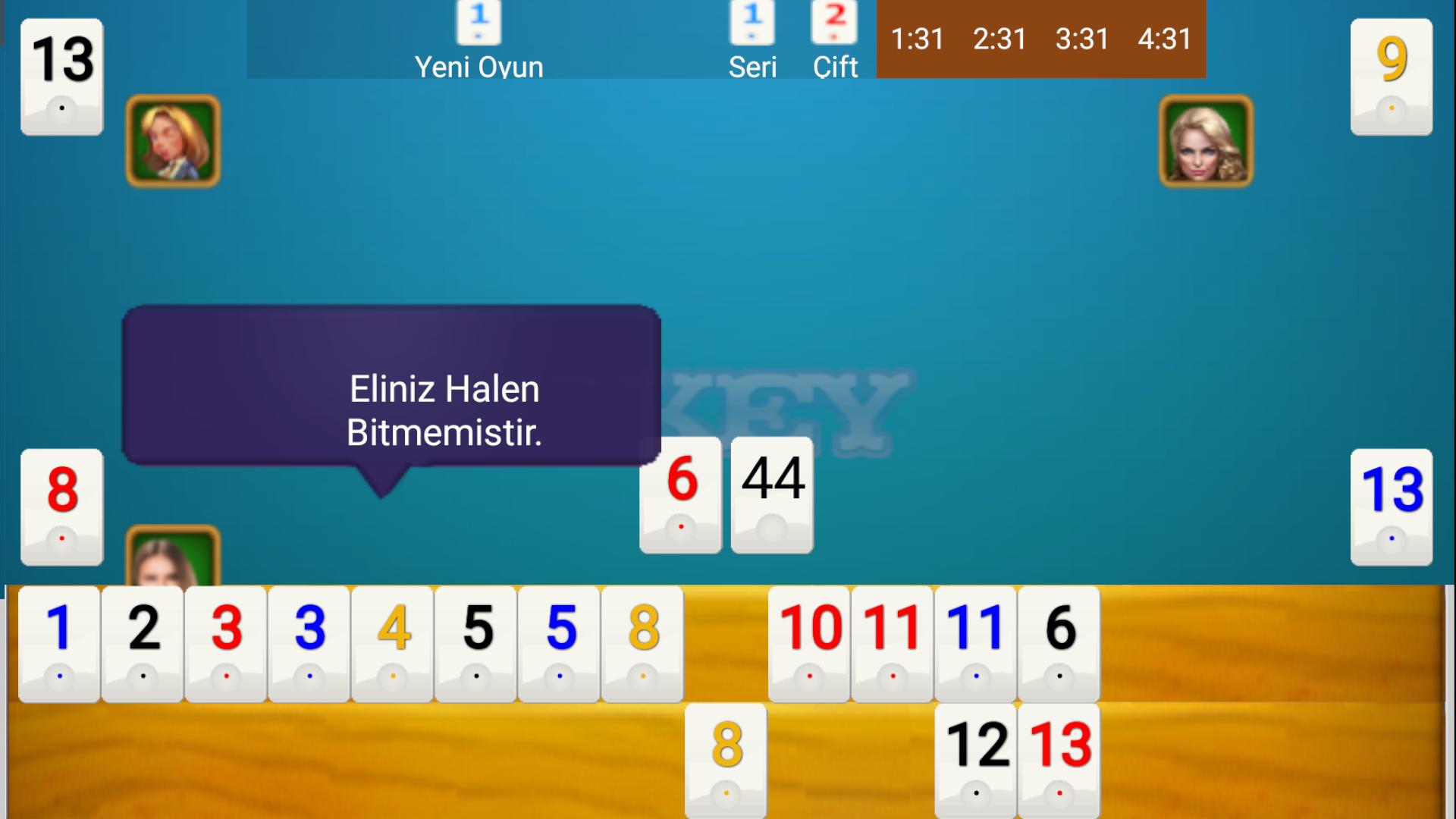 Okey game is not online. You play against advanced artificial intelligence in the okey game. In this way, you can play the game without the need for internet connection and you do not waste time waiting for other players to throw a bowl.