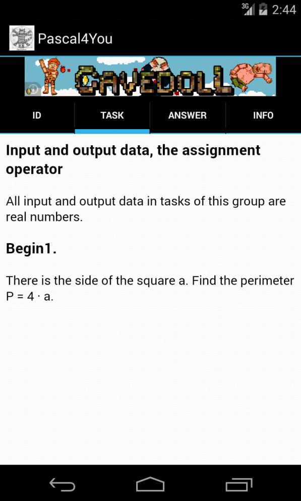 Pascal4You Programming Taskbook - Answers - Handbook (Free Pascal Docs (fp-docs 2.6.0 English): Pascal Language Reference guide, the system unit) on programming language Pascal is designed to develop basic programming skills within the discipline 'Informatics' and 'Applied Mathematics'. Programming Taskbook focuses on the development and implementation of the algorithm software solutions with increasing complexity within a group of tasks and overall Taskbook.