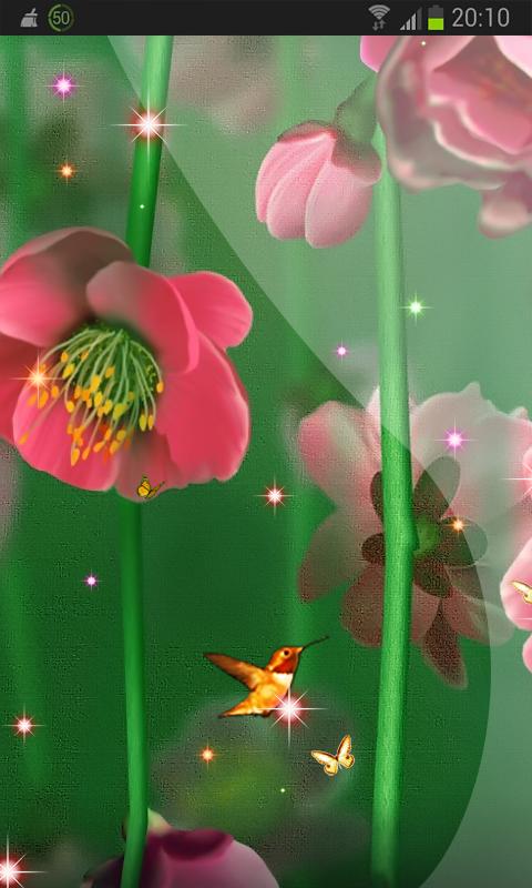 Summer pictures on the screen smartphone! App Pictures of Summer Bird Nature surprise simple floral background and small hummingbirds and butterflies.