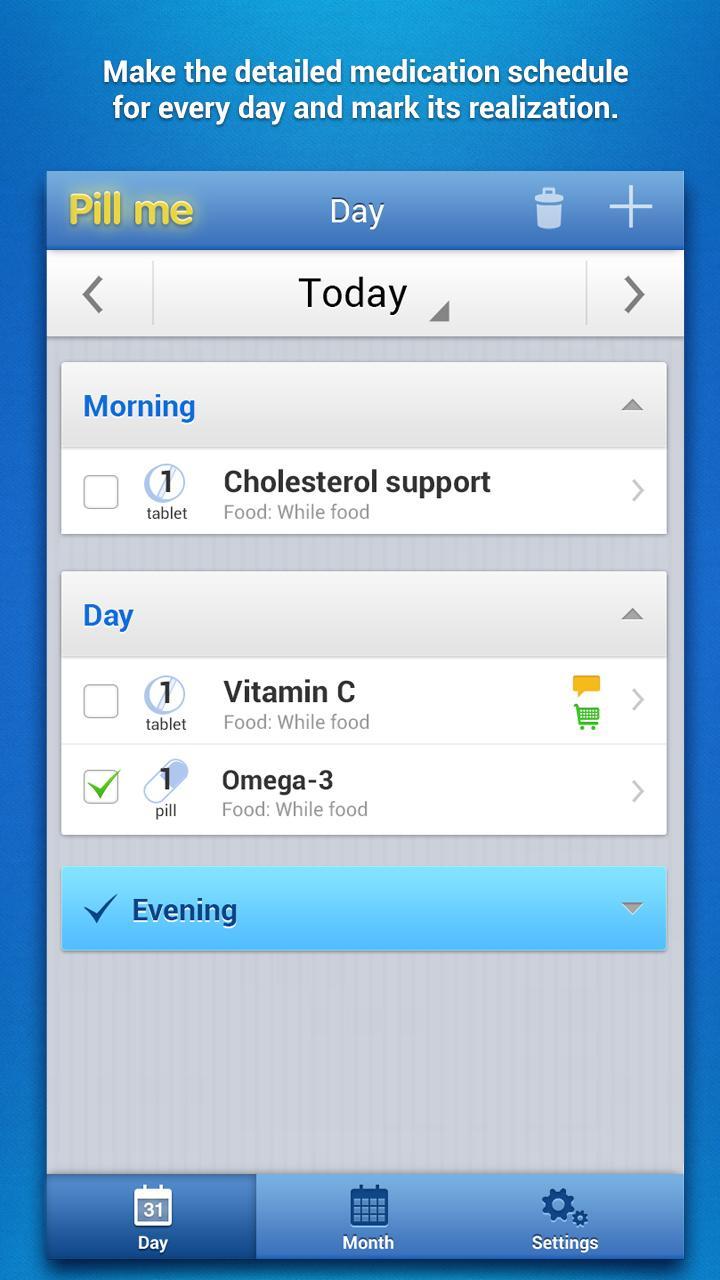Pill me has a colour and clear interface making it a useful and fascinating tool for every day health care!