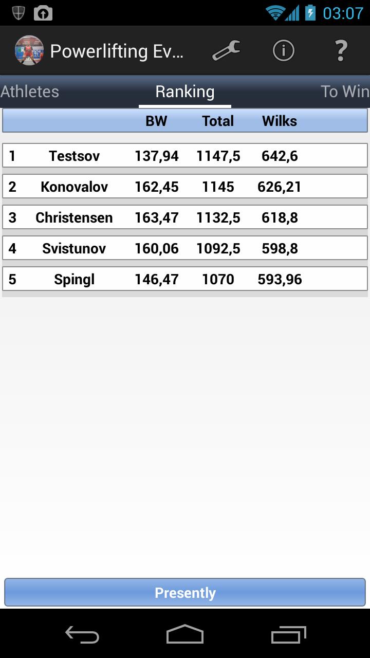 This tab allows you to know the minimum score to beat your opponents. For example, you can know how many kilograms total they are needed, or how many kilograms are needed on deadlift to beat a determined athlete.