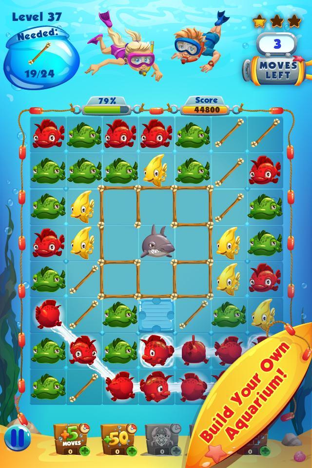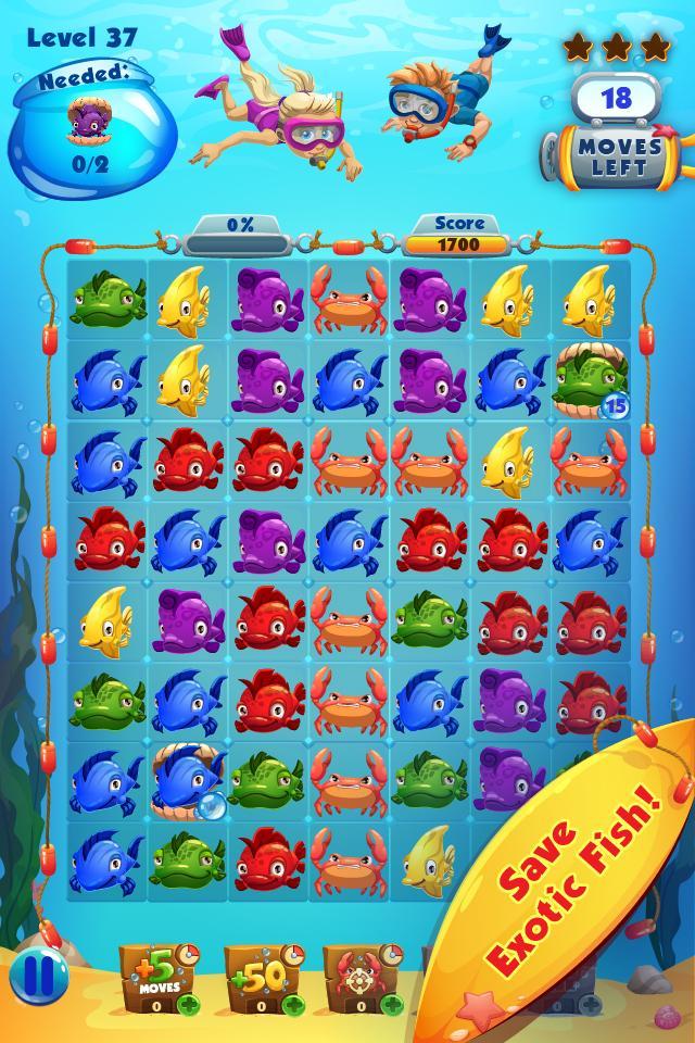 Explore as profundezas do mar em mais de 140 níveis neste novo jogo de aventura Match-3!
