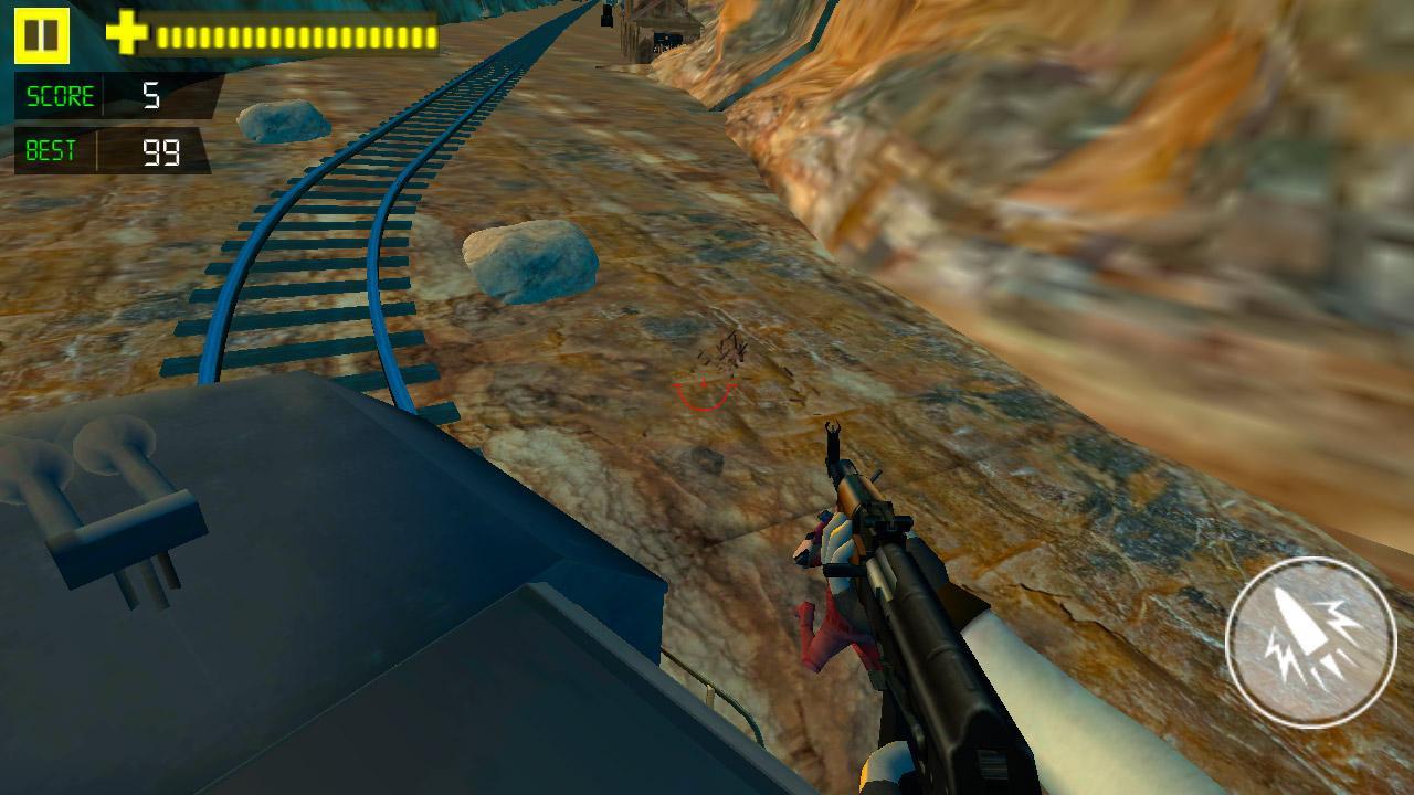 Army Train Commando é um jogo gratuito em 3D FPS (primeira pessoa), no qual o atirador está em uma aventura sem fim. Os inimigos se posicionaram no seu caminho com metralhadoras e armas de tiro de tecnologia e você está baseado no topo de um trem com o rifle AK-47. Sua vida está em perigo e você não tem chance de sobreviver. Mas você tem que matar o máximo de soldados possível. Atire em tudo eles! Mate -os antes de matar o Comando do Exército neste jogo de trem.