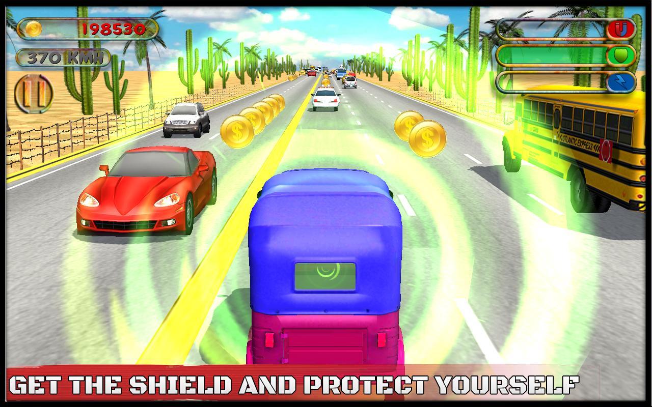 A interminável Rickshaw Racing não possui apenas uma variedade de riquixás de tráfego automático, mas também tem um ambiente de ternura. Selecione seu ambiente favorito para dirigir entre o extremo deserto do verão, uma estrada congelante com neve, uma grande cidade verde ou uma cidade moderna de alto tráfego para vencer este jogo de corrida. Dirija o riquixá em toda a cidade de alto tráfego e colete power -ups para melhorar a saúde do seu riquixá de trânsito. Use a energia do ímã eletrizante para puxar cada vez mais moedas em direção ao seu interminável riquixá de tráfego. Você também pode proteger o riquixá de um tráfego ou tráfego da cidade protegendo o escudo. Um mecanismo de velocidade de reforço ajuda você a dirigir rapidamente e adicionar uma emoção de extrema excitação em sua turnê de corrida de riquixá de trânsito sem fim. Vamos baixar este jogo gratuito hoje para se conectar com seus amigos e mostrá -los às suas habilidades de direção ganhando a corrida de riquixá.