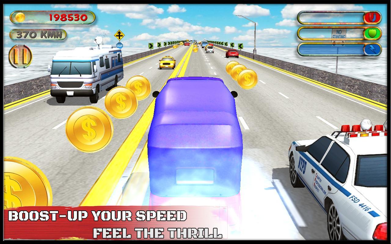 Evite atingir carros de trânsito. Dirija seguro e colete mais e mais moedas.