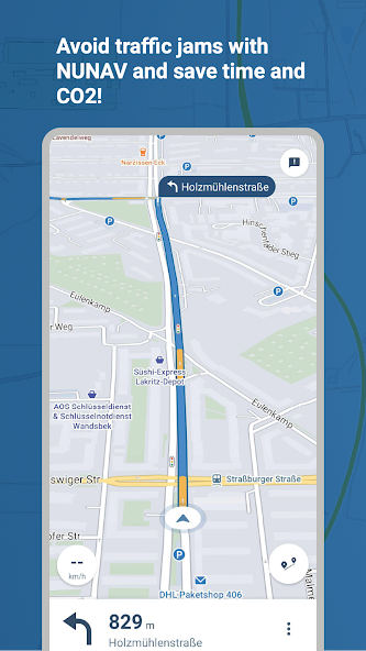 ? Você está cansado de ficar preso no trânsito? Com Nunav, você recebe uma rota que distribui inteligentemente o tráfego - para uma viagem mais suave e rápida sem desvios.