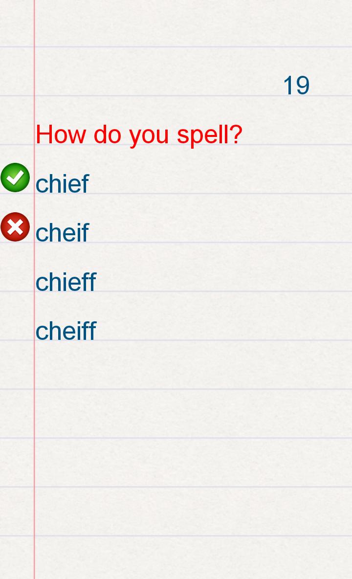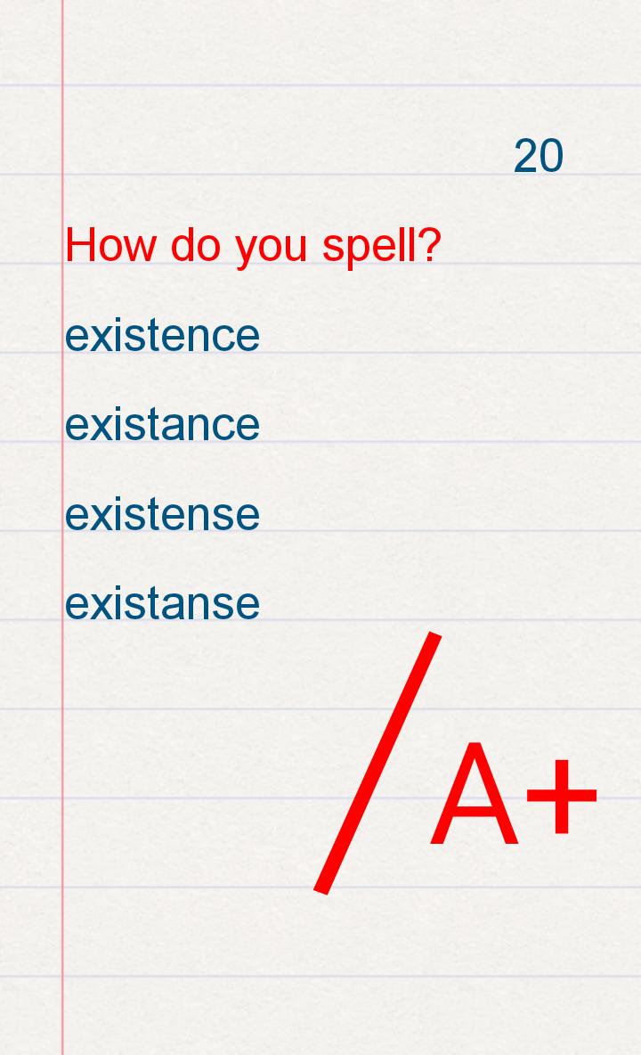 Cada rodada consiste em 20 perguntas. Aparece 4 maneiras de ortografia de uma palavra complicada.