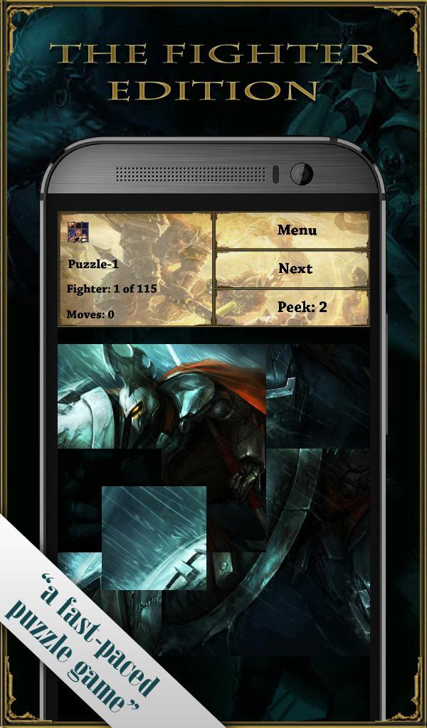 The League of Legends fighters in one awesome puzzle game: Puzzle-1 is the fighter edition! This isn't your normal tile puzzle, it's a fast-paced jigsaw game! Complete the Quest by solving all levels!