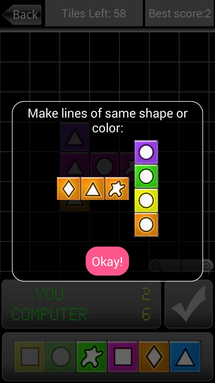 The rules are so easy they can be quickly learnt by try and error: there are a number of tiles. Some share color and some share shape. Create lines of tiles which share only one of the two to score!