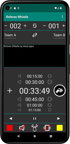 Referee Whistle, Stopwatch, Score, Notes, Red, Yellow card, Intervals