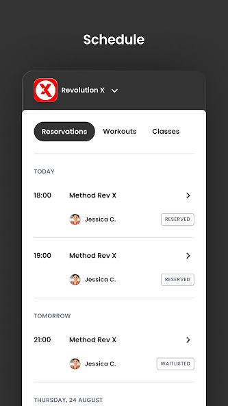 For members of Revolution X to reserve their place in a class, sign up for gym events, and general account management like updating headshots and credit card on file.