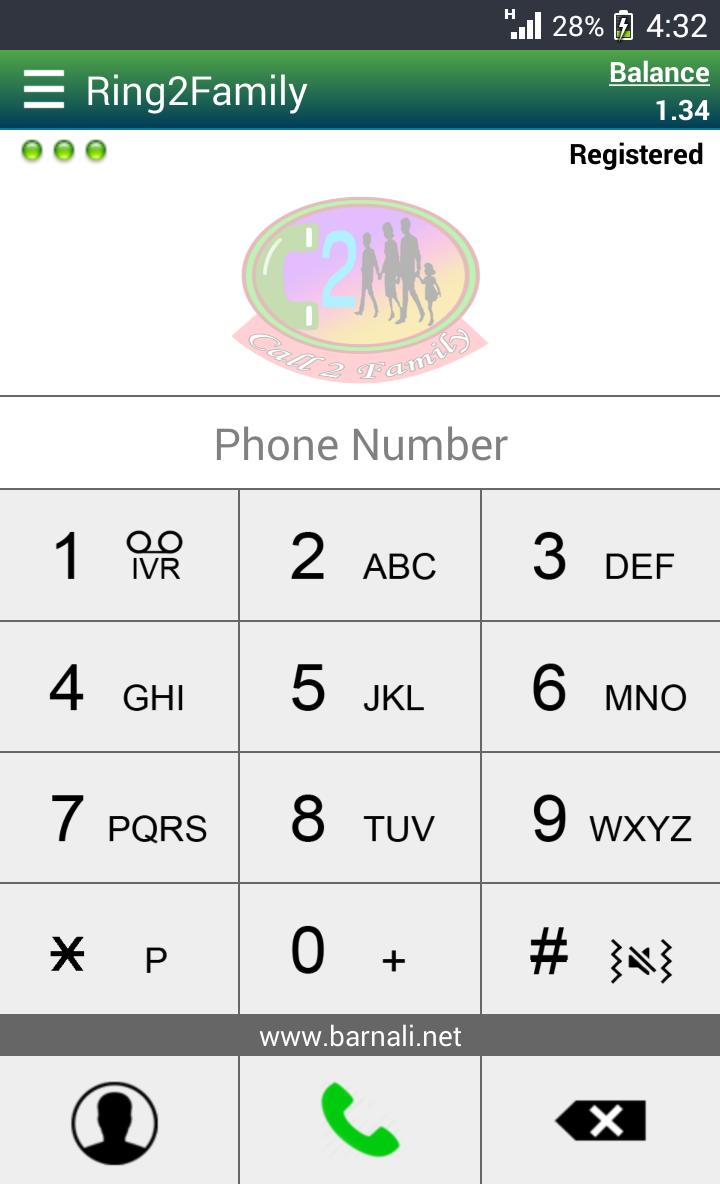 Ring2family dialer is a SIP dialer for Android operating system. It is designed to work in low bandwidth areas. Voice goes as IP packets through Internet. You can successfully run this application in any Android OS.