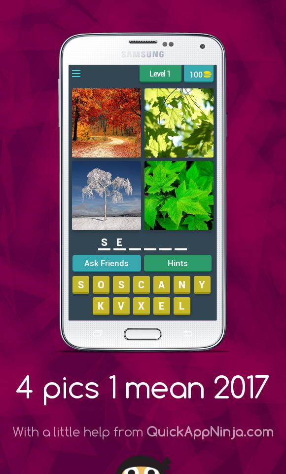4 Pics 1 Word Puzzle Game, которая может заставить вас играть и наслаждаться с другом и семьей, поднявшив скрытое слово на 4 рис, каждые четыре картинки связаны только с одним словом или средством