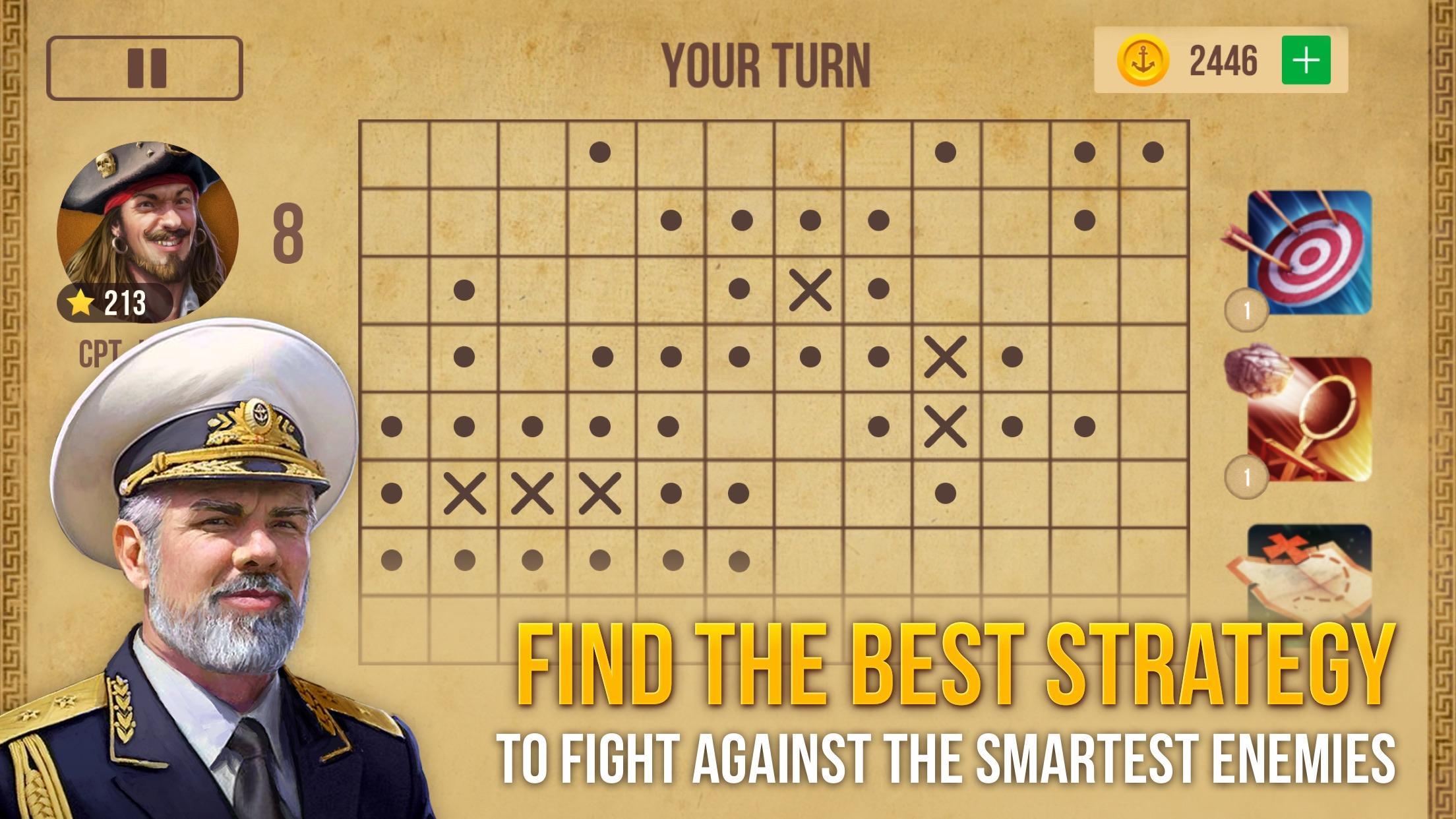 - Игрок против ИИ - Попробуйте выиграть AI Ship Wars AI и получить бонусы за каждый из военных кораблей