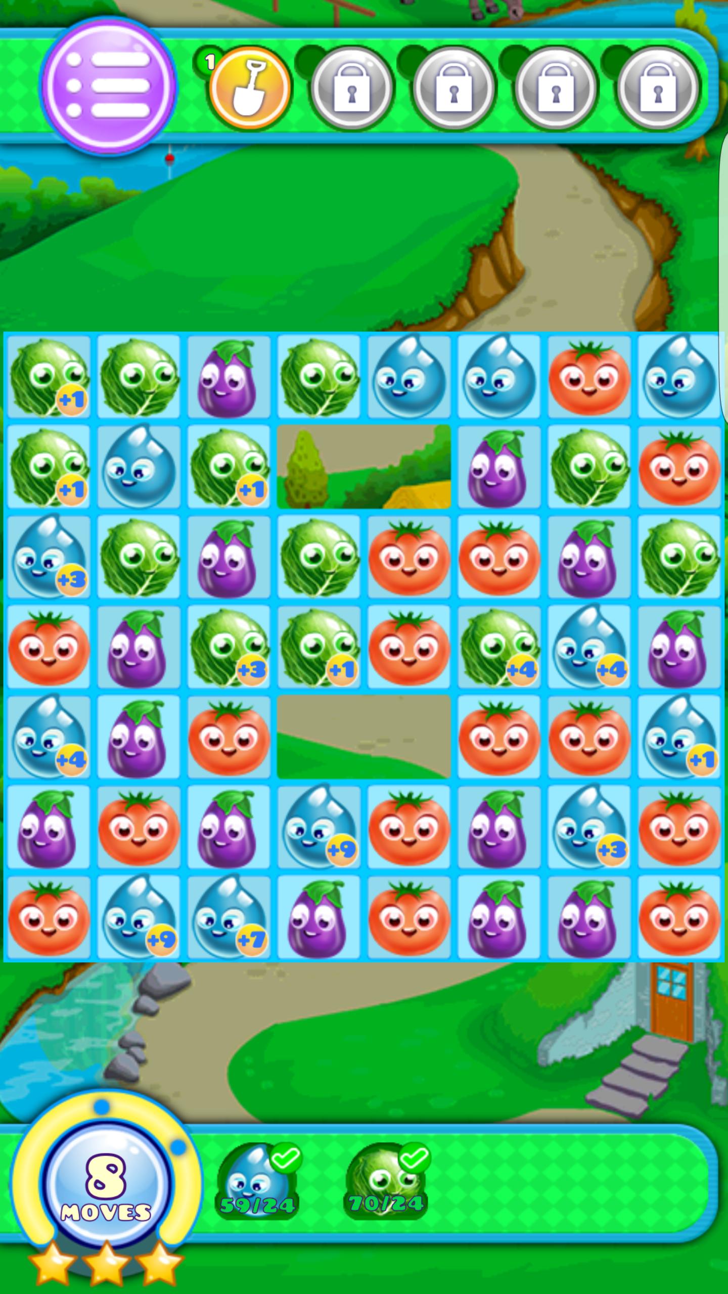 Сопоставьте 3 культуры того же типа вместе, чтобы собрать их!