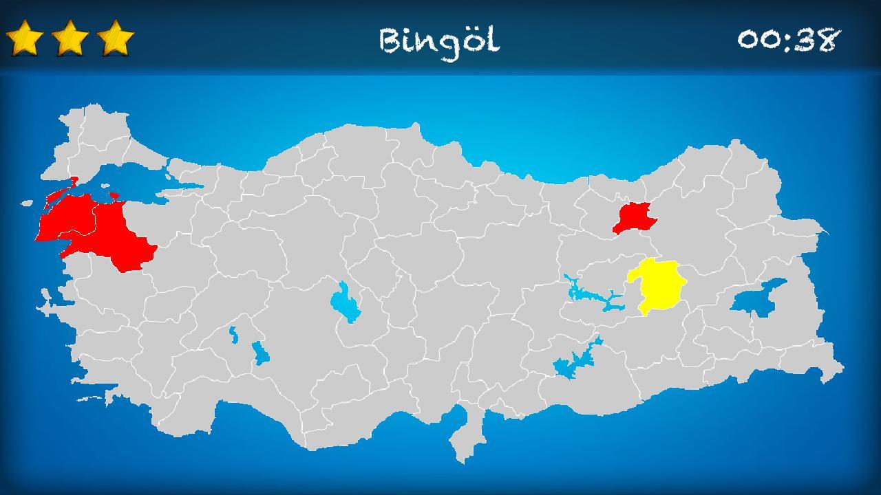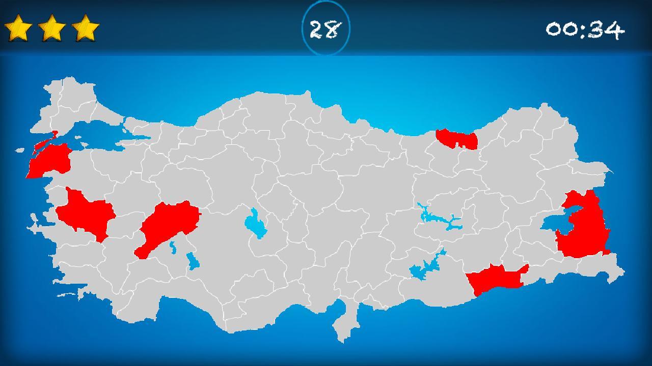 Harita Oyunu предлагает 2 различных типа игр в соответствии с именами провинций и номеров пластин. Вам нужно найти провинцию, которая появляется на вершине Тюркие на экране игры. У вас нет проблем с такой проблемой, как выбор провинции на карте, потому что вы хотите, чтобы мультитач Zoom и дважды отмечайте провинцию. Помните, время работает.