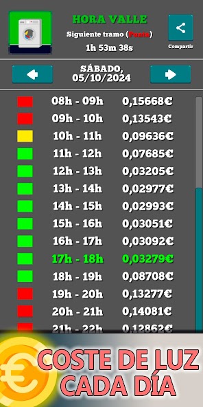 Schedule notifications for the cheapest or most expensive times. Calculate by simulation with the App's Calculator how much you will consume with 1 hour of air conditioning. Change the layout of how data is displayed. Get reports with graphs and history for the most curious and much more!