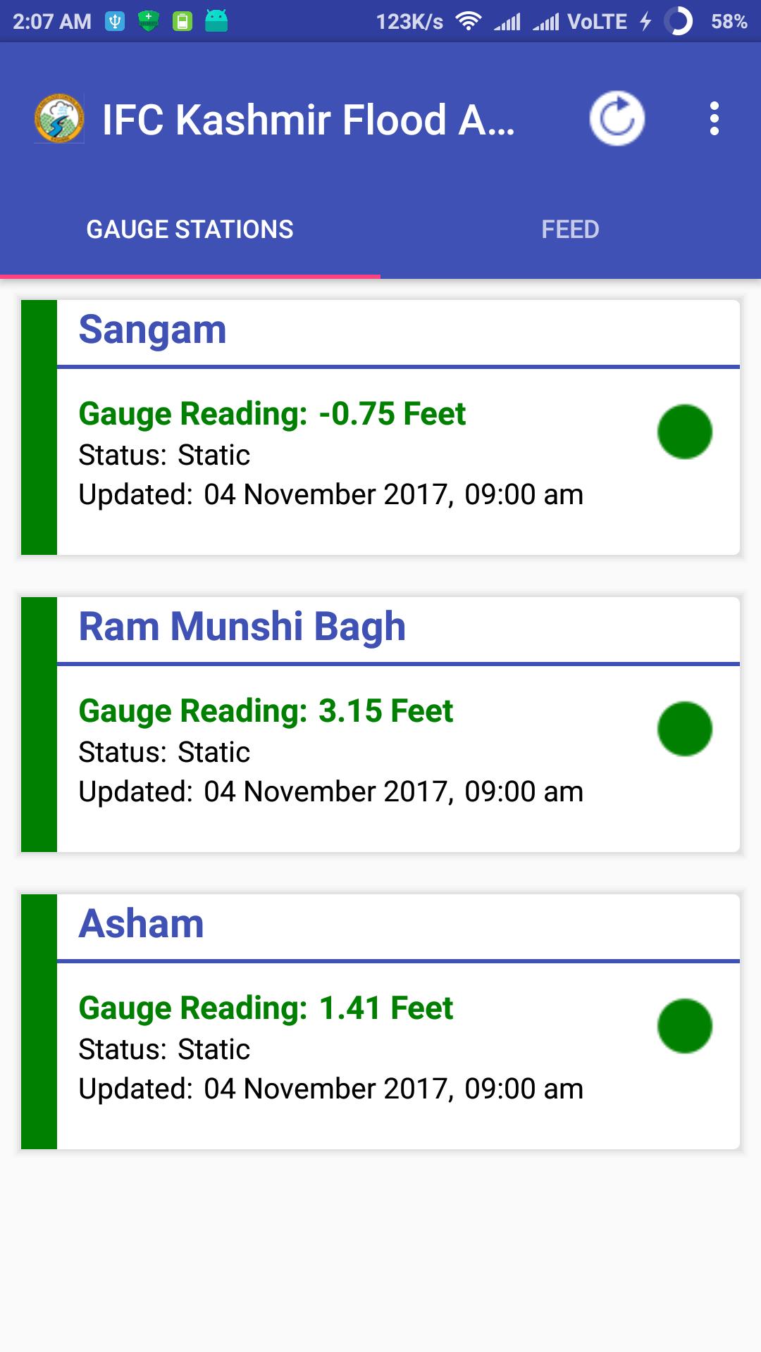 ### Уровни датчика измеряются вручную Кашмиром Департамента орошения и борьбы с наводнениями без помощи какого -либо спутника. Значения калибра в реальном времени должны быть реализованы в будущих обновлениях .... Надеюсь, Inshaallah