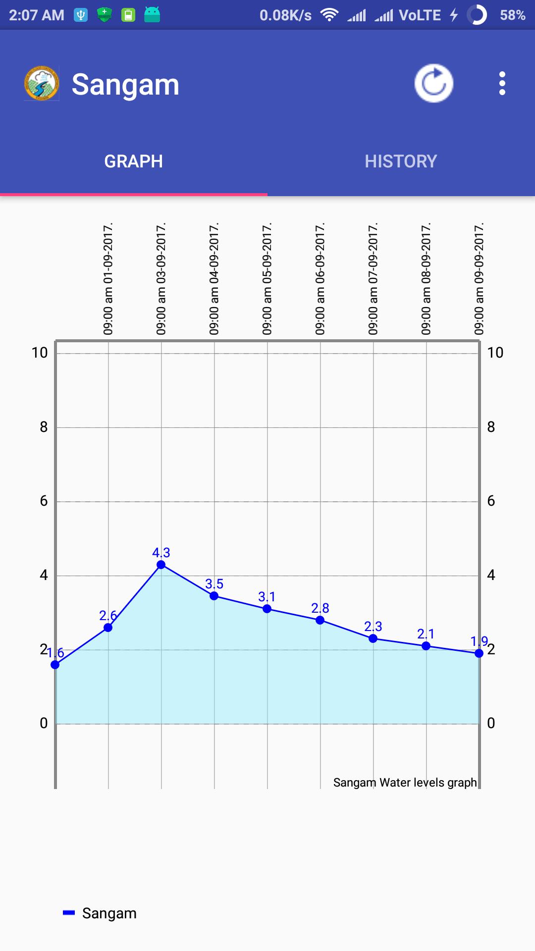 Приложение помогает изучить уровень датчика трех основных мест реки Иелум.