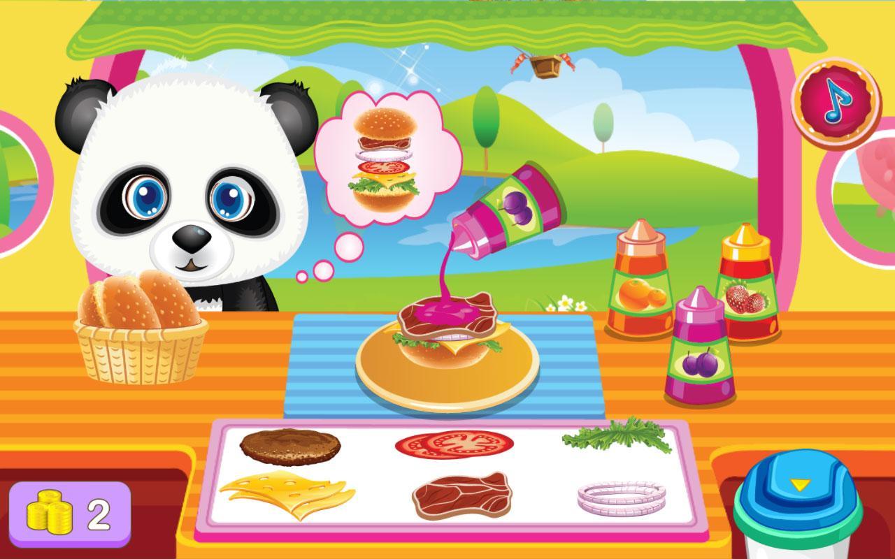 - 3 вида пищи для игры: печенье, гамбургеры, мороженое