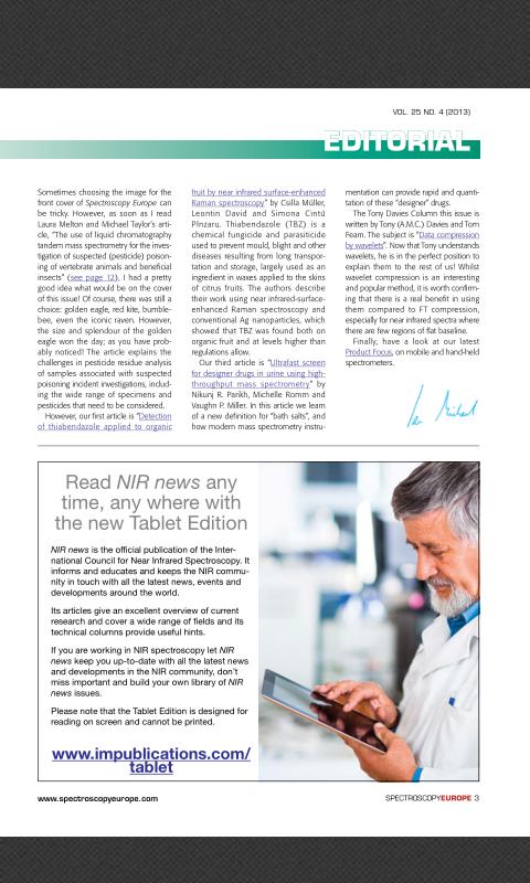Spectroscopy Europe является ценным, бесплатным ресурсом для европейского спектроскопического сообщества с 1975 года. Он доступен в печатных, цифровых и веб -выпусках, а также в этом приложении, поэтому вы можете выбрать, что вы предпочитаете. Чтобы подать заявку на бесплатную подписку на печати, пожалуйста, посетите http://www.spectroscopyeurope.com/register.