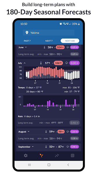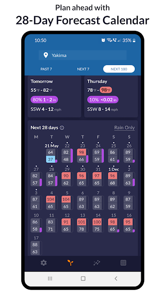 • Создание краткосрочных до долгосрочных планов с использованием прогнозов погоды в течение последних 7 дней, следующих 14 дней, следующих 28 дней и следующих 180 дней.