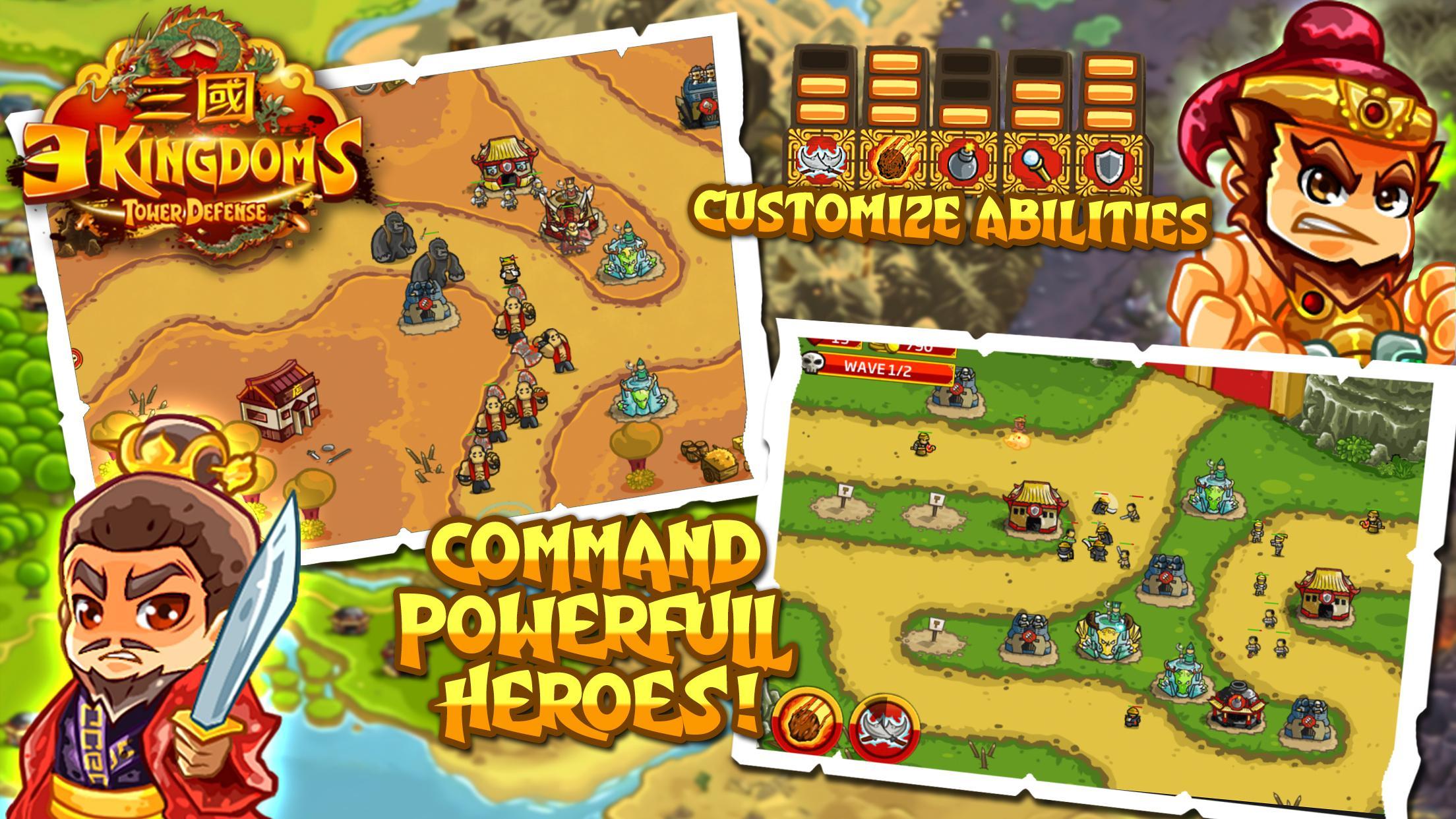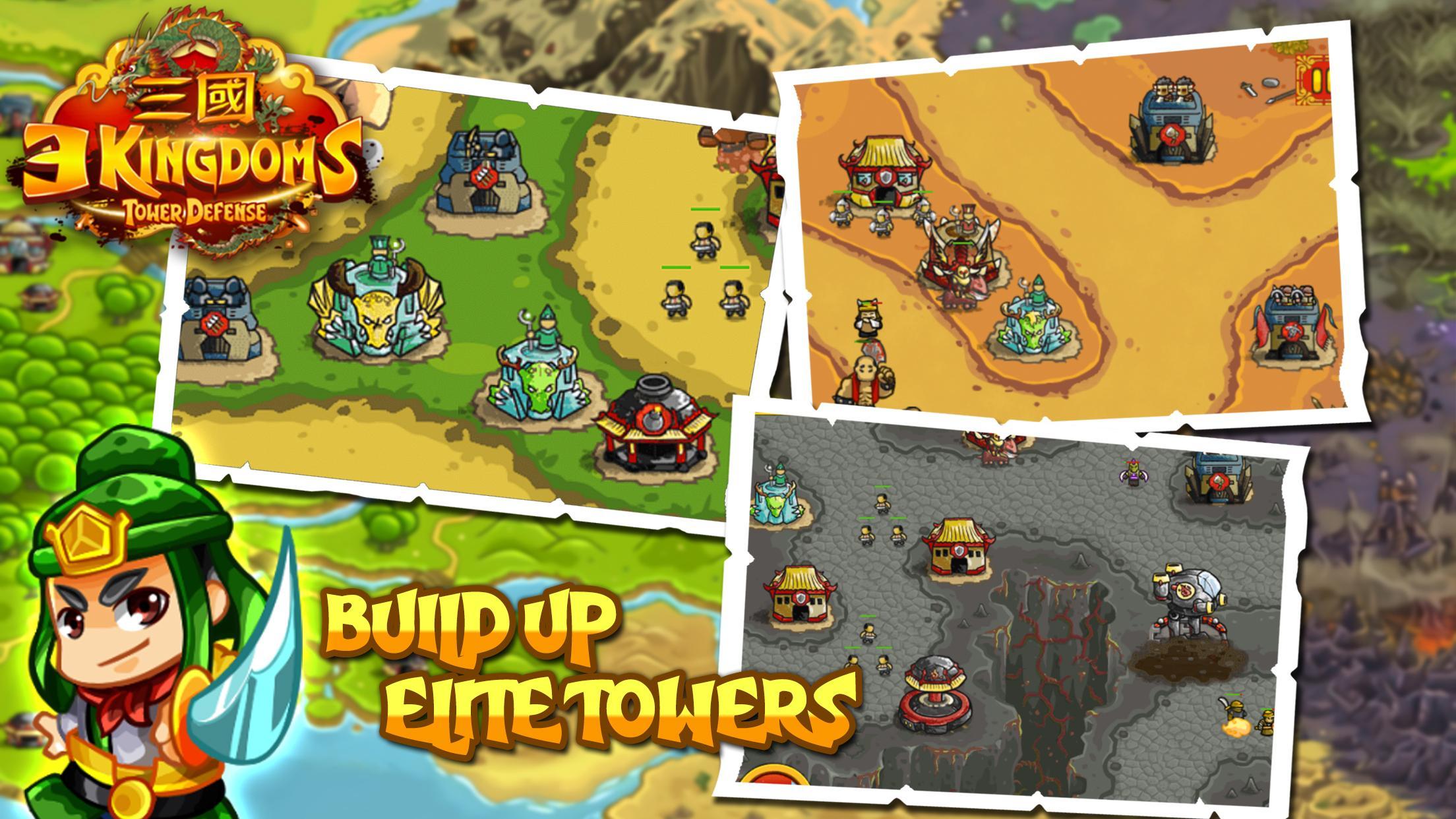 Сражайтесь в лесах, горах, городах. Постройте башню лучников, башню пехотинцев, пехотную башню, волшебную башню, башню катапульты или башню роботов, чтобы сокрушить врагов. Положите их на землю и заставьте сдаться! Станьте легендой о героях Королевства династии Хань и станьте королем в китайском мире. Битва неизбежна, и мы должны встать на защиту правого дела.