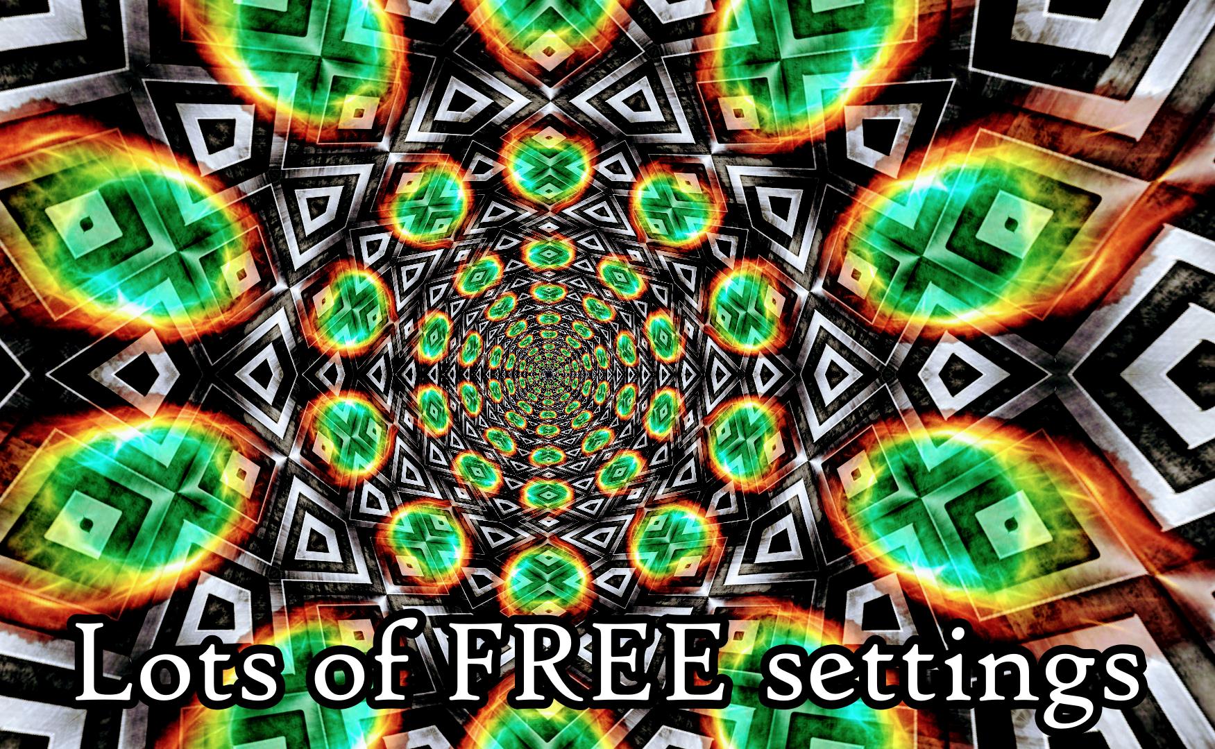 You will experience a thrilling 3D ride through tunnels filled with shining plasma clouds on your way to meet with extraterrestrials. The app looks totally different in the music visualizer, where the tunnels change colors with the music.
