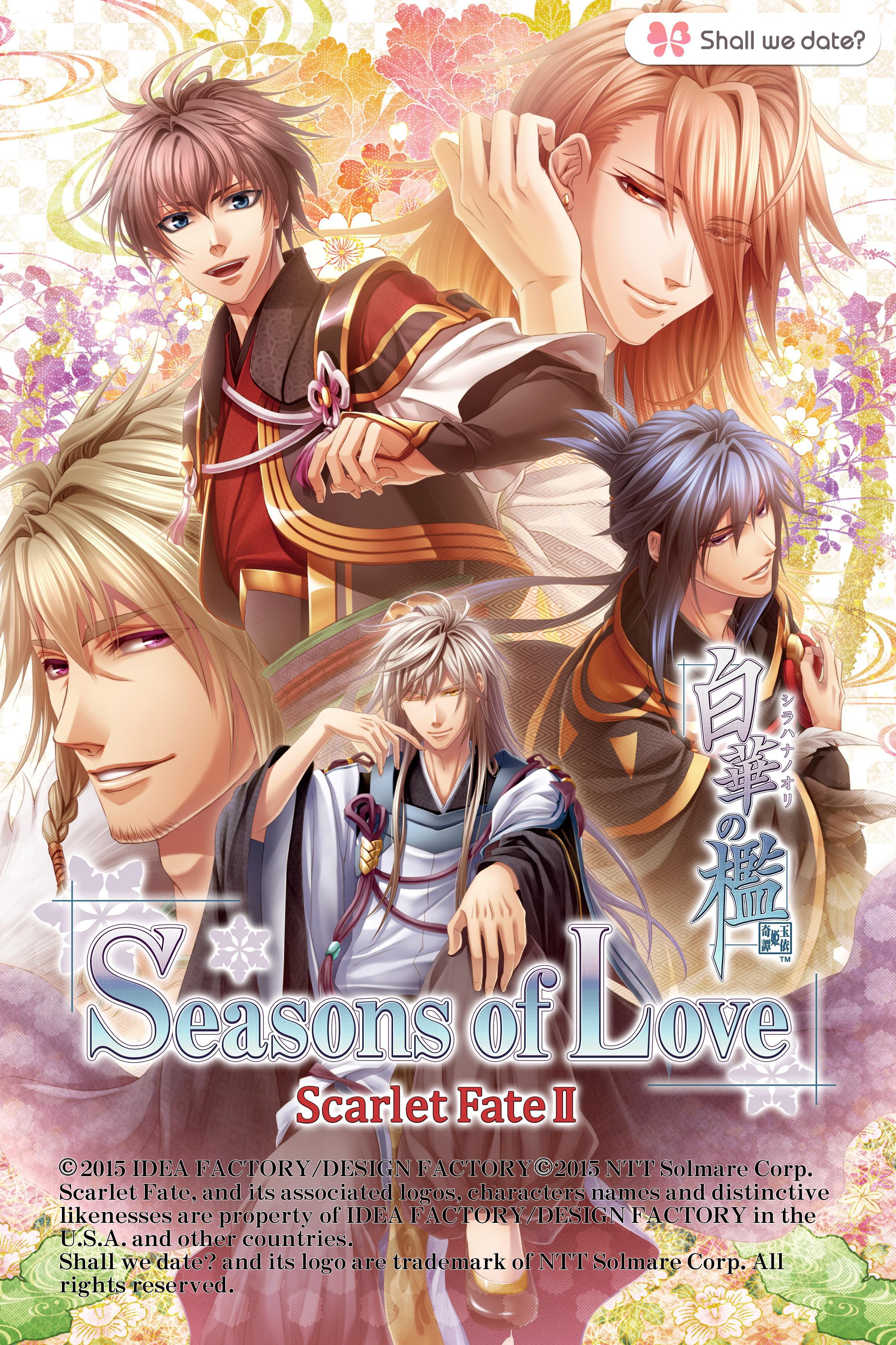 Seasons of Love -Scarlet Fate II- (original title Shirahana no Ori -Hiiro no Kakera 4- Shiki no Uta) is a sequel to “Scarlet Fate -Fragments of the past-”, one of the many successful romance visual novel games from the famous “Otomate” brand from Idea Factory known for critically acclaimed titles such as “Hakuoki”, “Demons’ Bond” and “Amnesia.”
