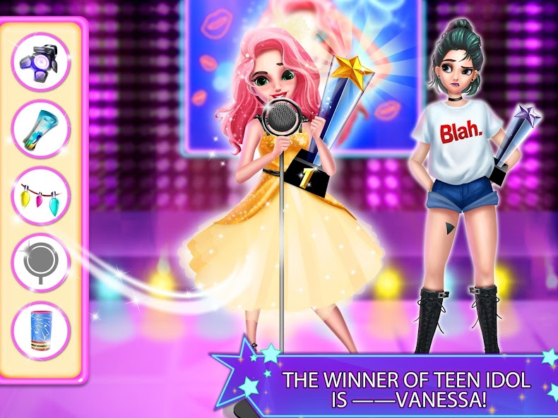 Nerdy girl Hannah always had a superstar dream. One day, she got magical powers and she can turn into a beautiful 16-year-old girl Vanessa as her wish. She ran into a talent scout and joined TEEN IDOL’s competition.