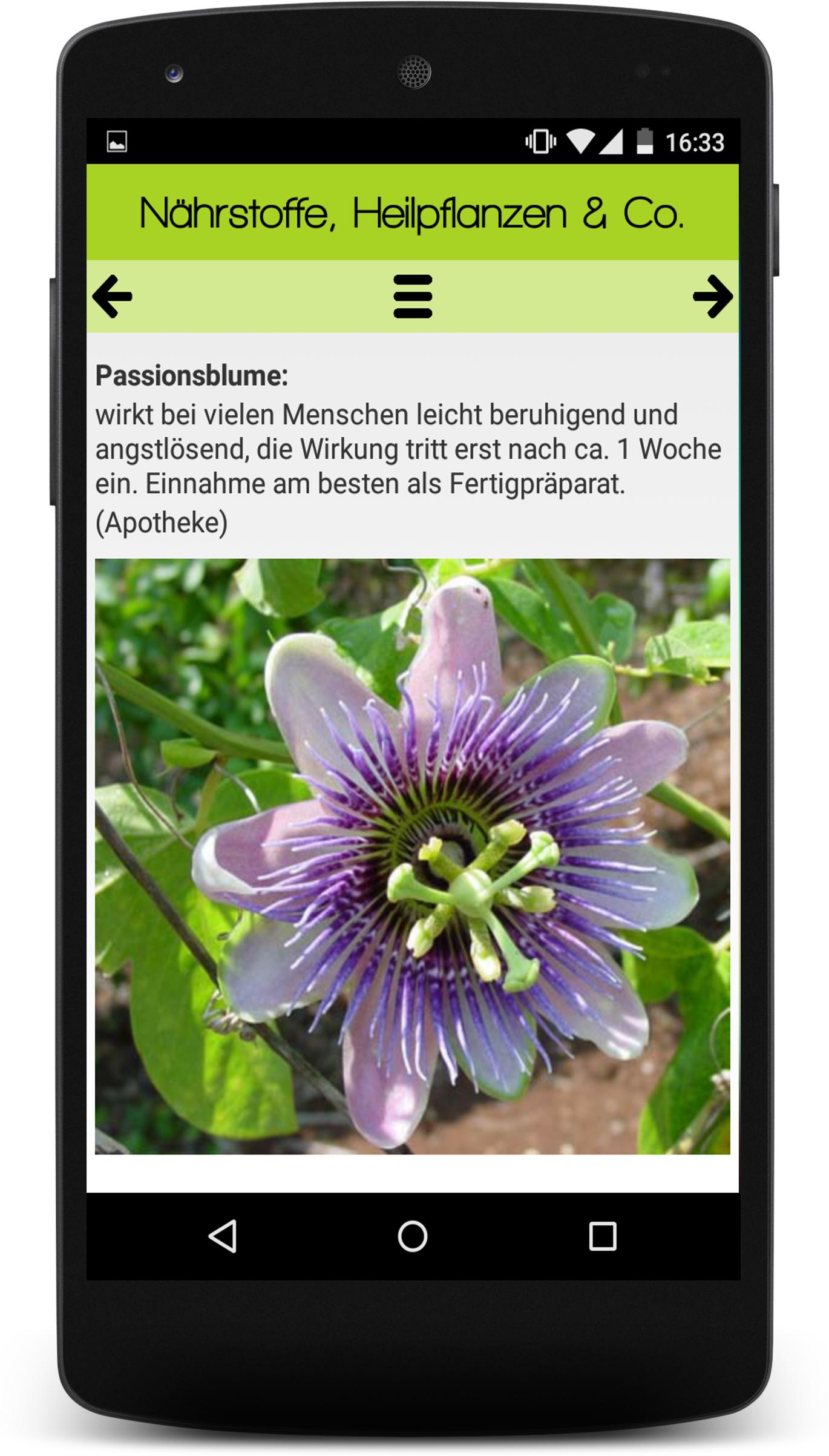 The app not only gives valuable tips on life, but also for treatment with natural means such as the passion flower, St. John's wort, etc. and also explains the use of easier strategies to be used.