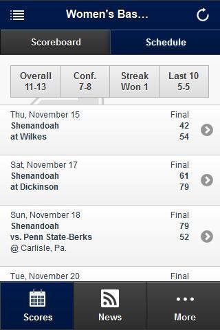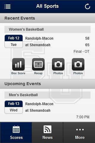Created by PrestoSports in partnership with Shenandoah University, Front Row gives fans access to score updates, statistics and game recaps.