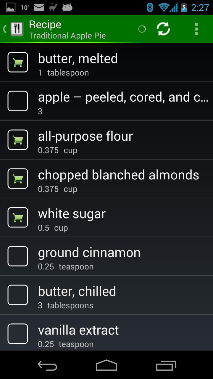 • Add all ingredients of any recipe to your store trip list with a single click