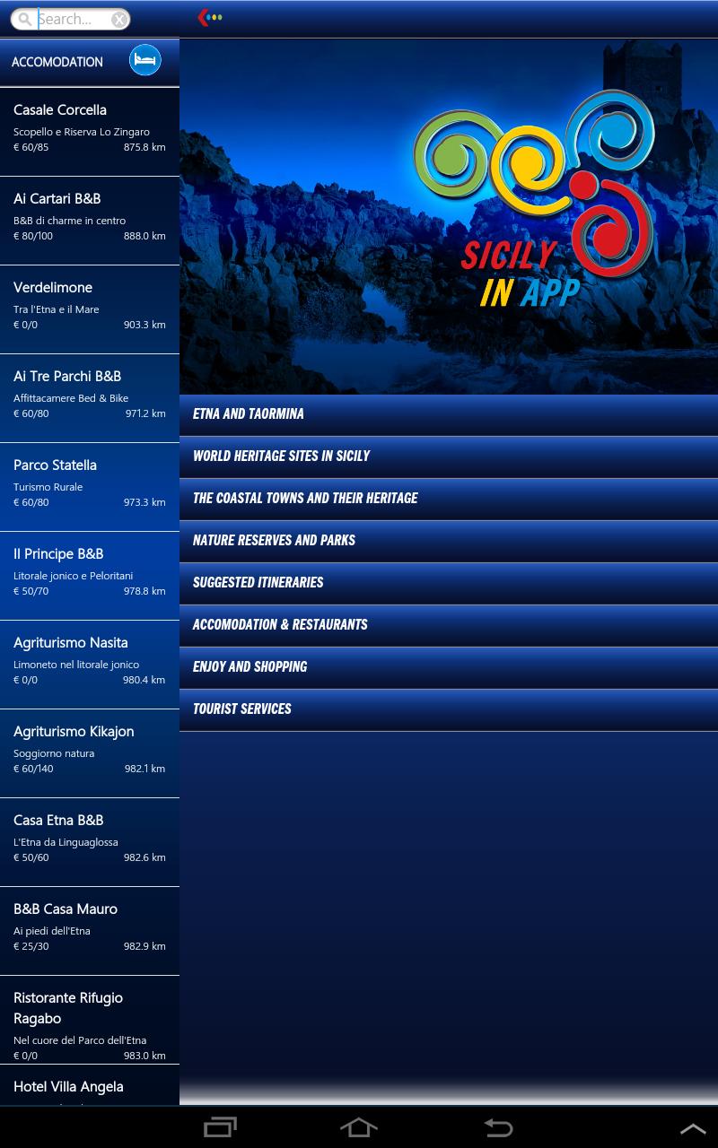 This handy guide will take you/point you to the best of Sicily’s hospitality: accommodation, restaurants, local food and wines. Explore the various itineraries, grouped by areas of interest, or browse/navigate its comprehensive photo gallery, and easily reach the island’s most charming/enchanting places through the integrated GPS and map facilities.