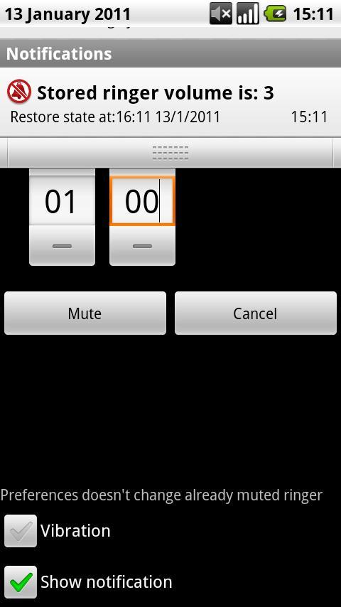 - “Vibration” – it on/off vibration mode when you mute mobile using Silent Mobile.