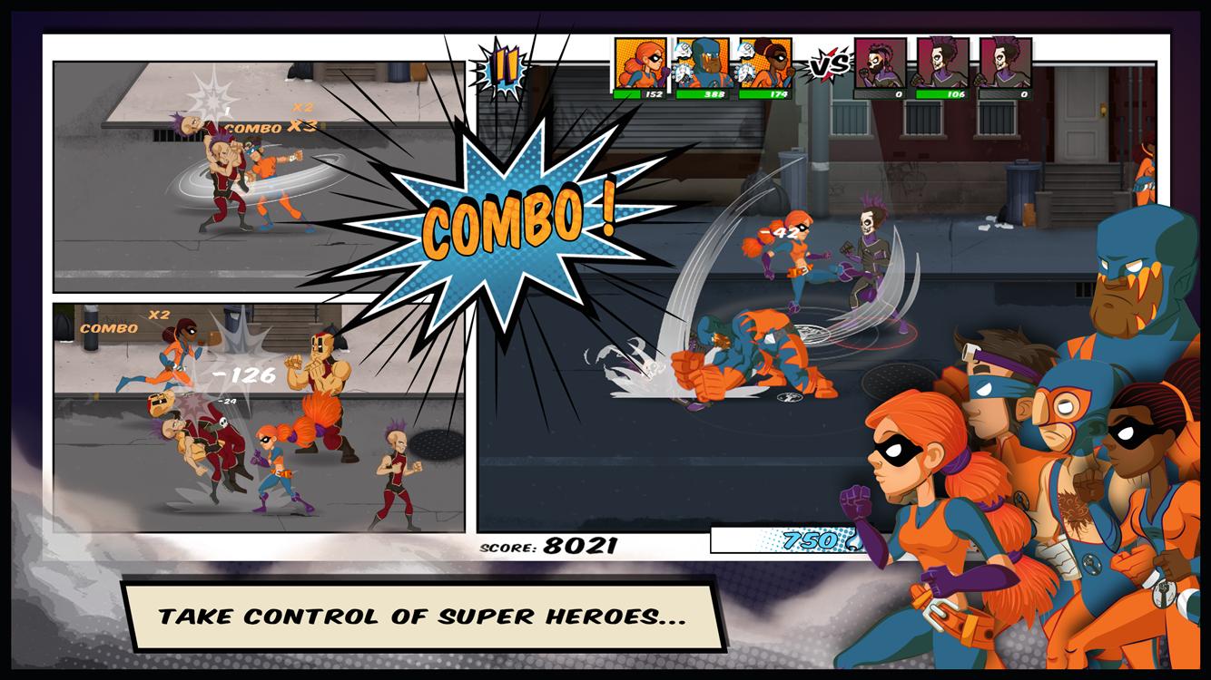 Control super heroes, use powerful skills and defeat the root of the crime.