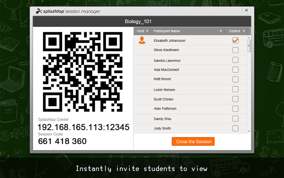 + Share anything from your computer instantly. Even the most demanding multi-media PC / MAC applications can be shared instantly without any reformatting using unfamiliar authoring tools or uploading ahead of time! Have a website or YouTube FLASH video to share with the class? No problem – just start a Splashtop Classroom session and display the QR/session code for students to instantly join! Visually impaired students can now see the lesson from anywhere in the class.