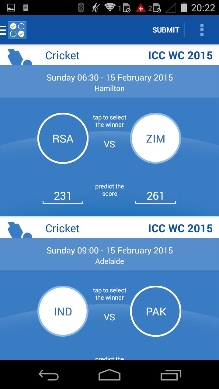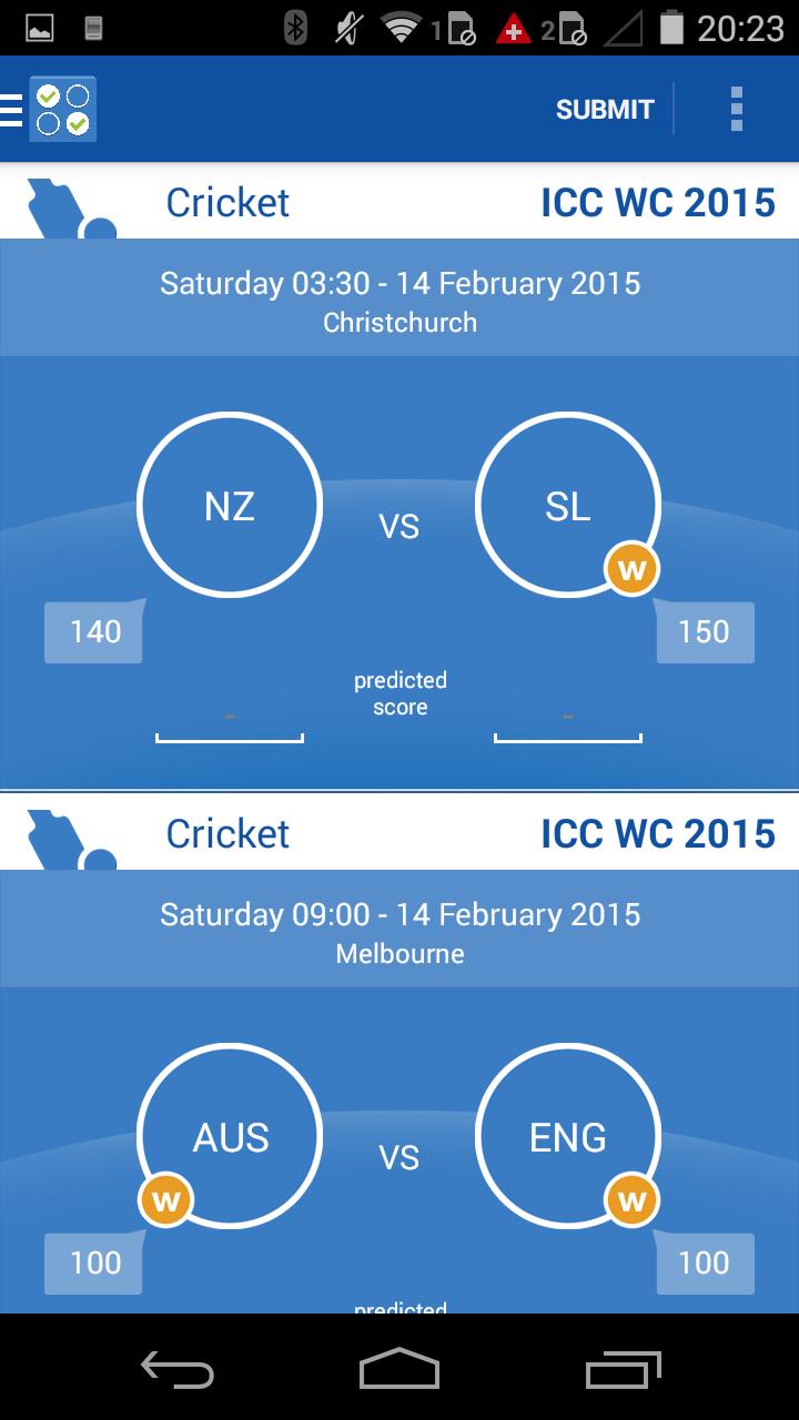 - You can predict the winner of a match by tapping on one of the team names to select it