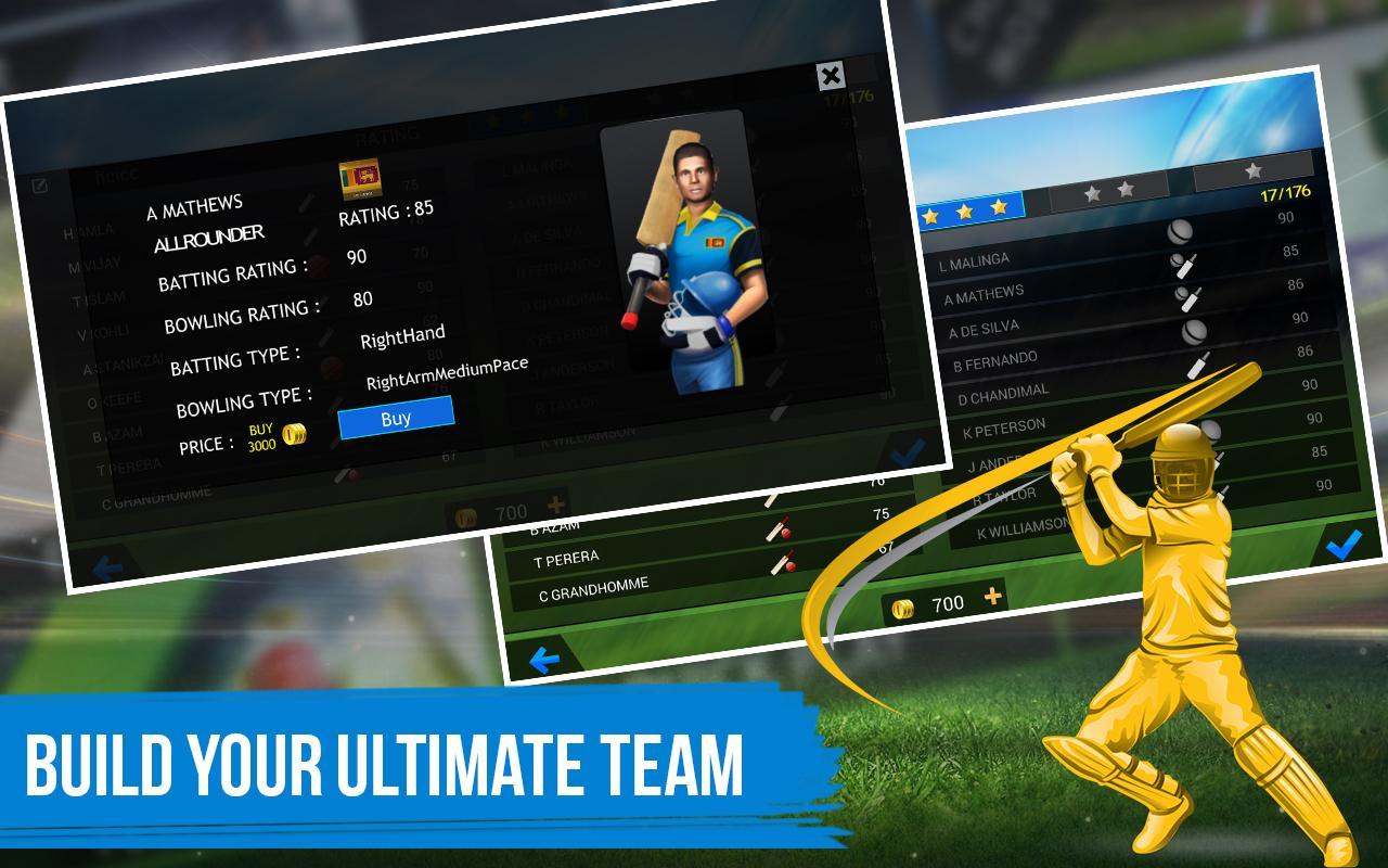 - User experience: Player has full control over team selection, batting & Bowling Order, Fielding presets, etc.