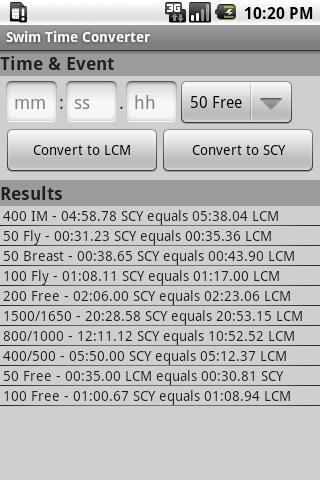 - Converts swimming times for long course meters, short course meters, and short course yards.