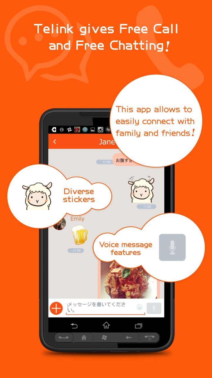 Additionally, free calls, chats, voice messages, stamps, photos, movies are available between Telink users.