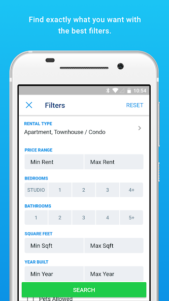 • Power search criteria by what's important to you, including pets, proximity, price, square footage, and more.