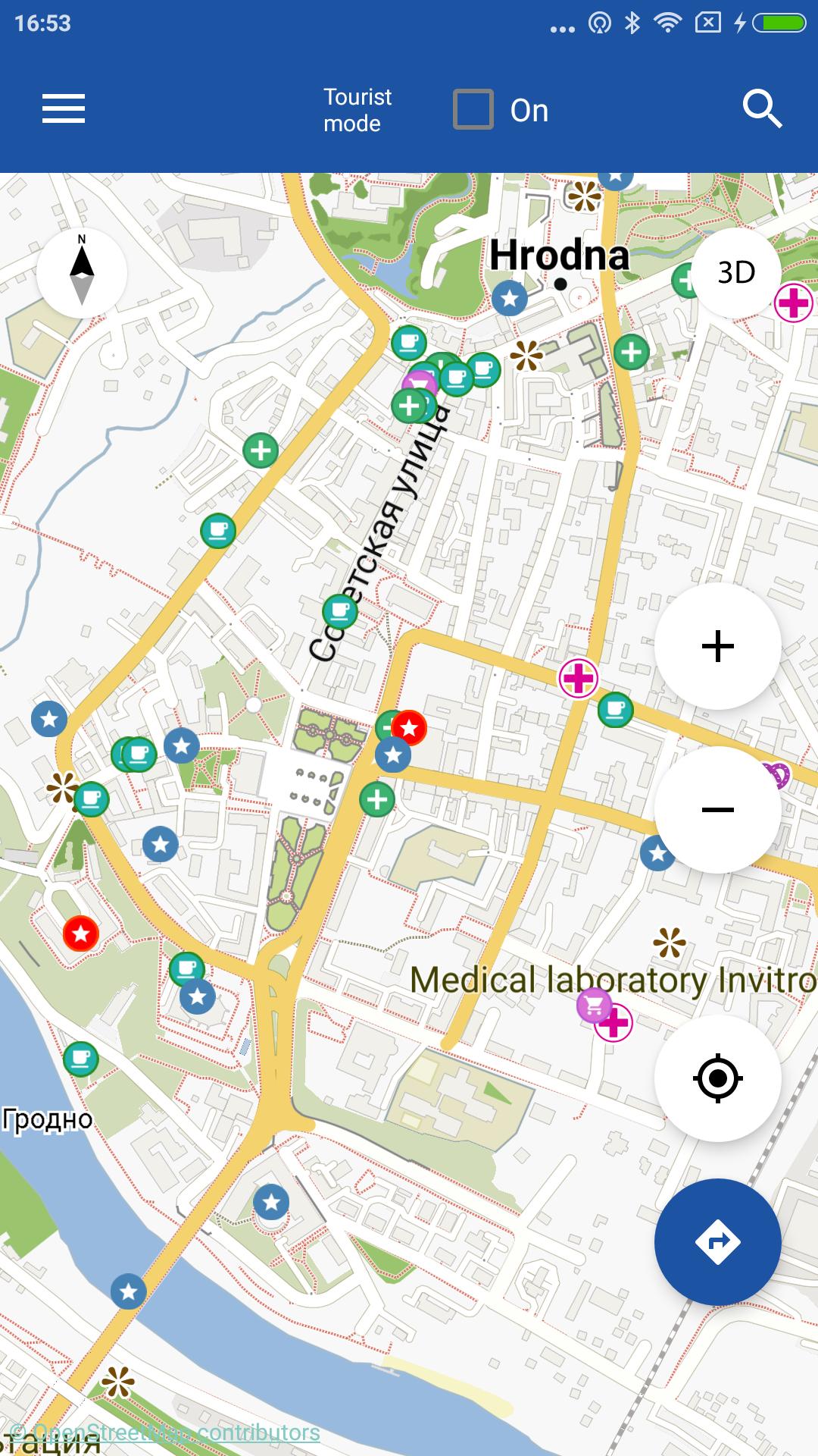 แผนที่ออนไลน์และออฟไลน์ของ Grodno : สถานที่ท่องเที่ยว, ร้านค้า, โรงแรม