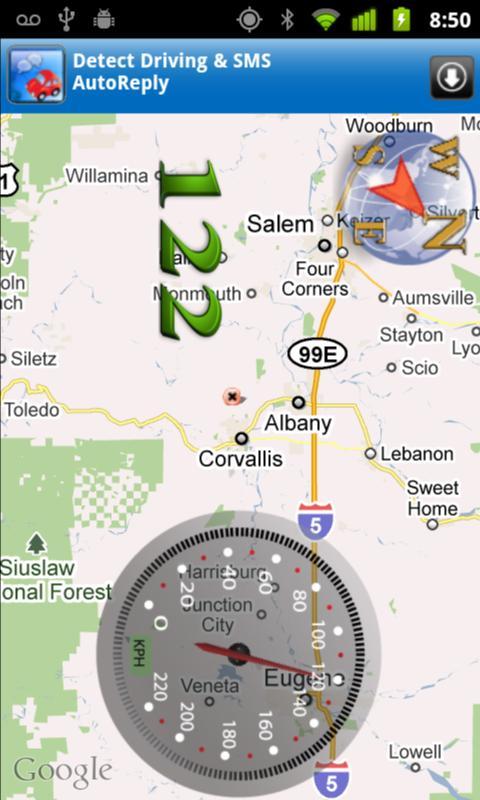 เครื่องวัดความเร็วแบบอะนาล็อกและดิจิตอล GPS พร้อมเข็มทิศที่ดูดี พวกเขาทั้งหมดซ้อนทับแอป Google Maps ที่กำหนดเอง