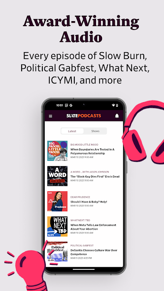 - พอดคาสต์ที่ได้รับรางวัลของเรารวมถึง Gabfest ทางการเมือง, Gabfest วัฒนธรรม, แหวนถอดรหัสและการเผาไหม้ช้า