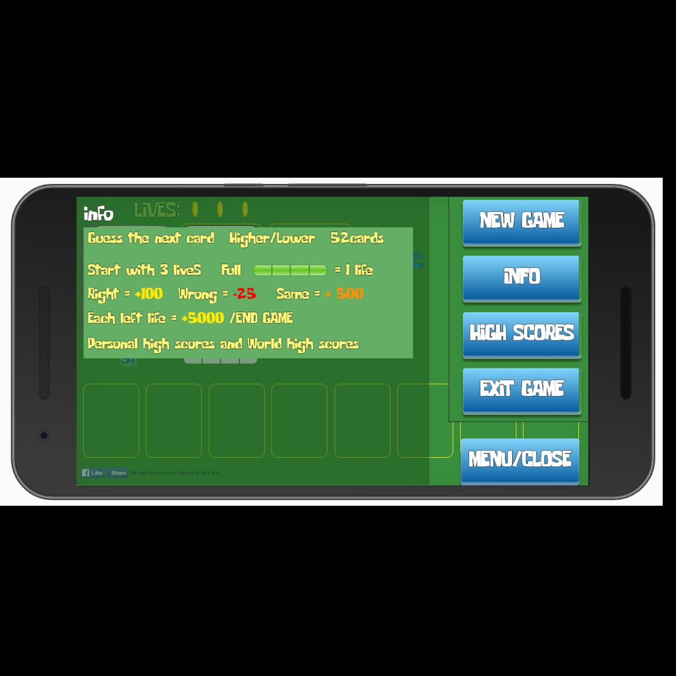 เดาว่าการ์ดใบถัดไปจะสูงกว่าหรือต่ำกว่าการ์ดก่อนหน้านี้หรือไม่ การตัดสินใจที่ถูกต้องติดต่อกันแต่ละครั้งจะให้คะแนนมากขึ้น การ์ดที่ถูกต้องทุกครั้งที่สี่ - รักษาความปลอดภัยชีวิต