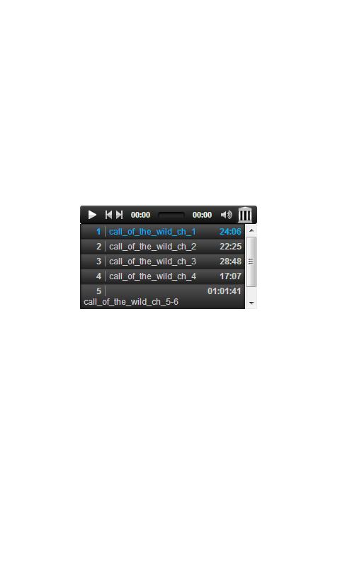 This app is a convenient bookmark that opens your browser and allows you to listen to The Call of the Wild audiobook without having to download the file to your device. Includes ability to control volume, pause, rewind and forward.