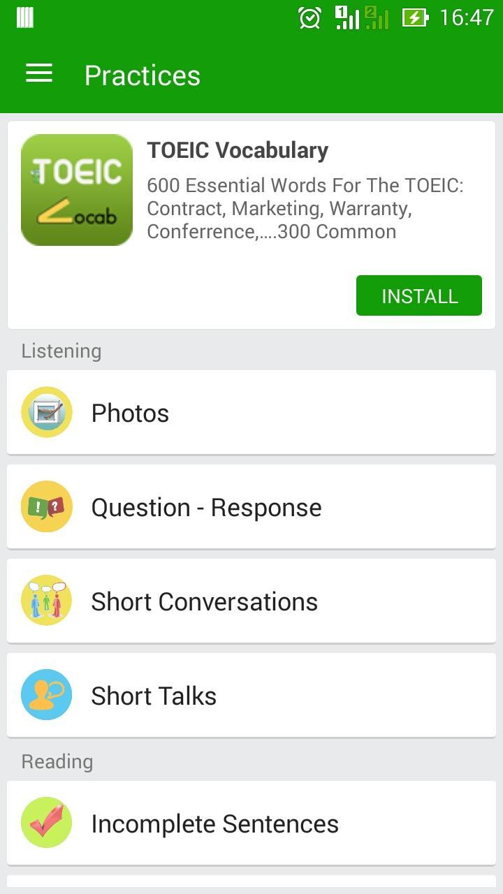 TOEIC Test is an application which will help you improve your score of TOEIC