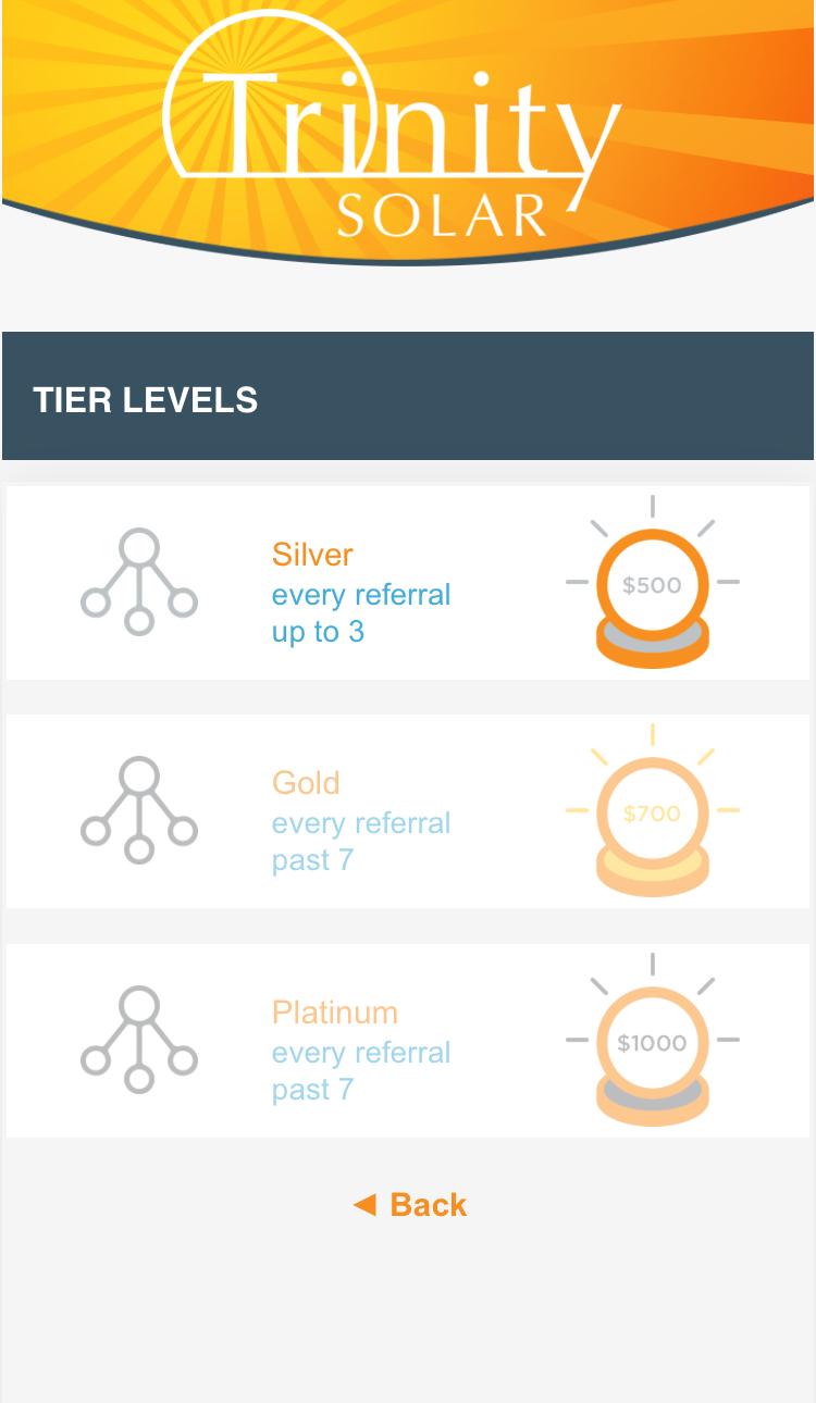 We’ve always encouraged our customers to help their friends and family go solar. Now it’s easier than ever with our brand-new Trinity Solar Connect Community to earn cash rewards while helping people keep more of their hard-earned money. Submit & track their journey and your progress to a referral bonus. See how close you are to hitting the next Referral Tier to increase the amount of your referral bonuses!