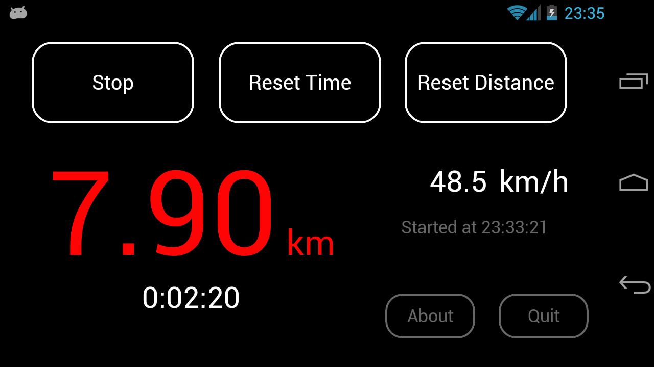 Simply input your targeted average speed in km/h (tap on 'Tap to set' text next to 'km/h') and hit the Start button. The distance counter will display the theoretical distance traveled. It will also beep every 100 meters in order to give additional non-visual feedback to the copilot.